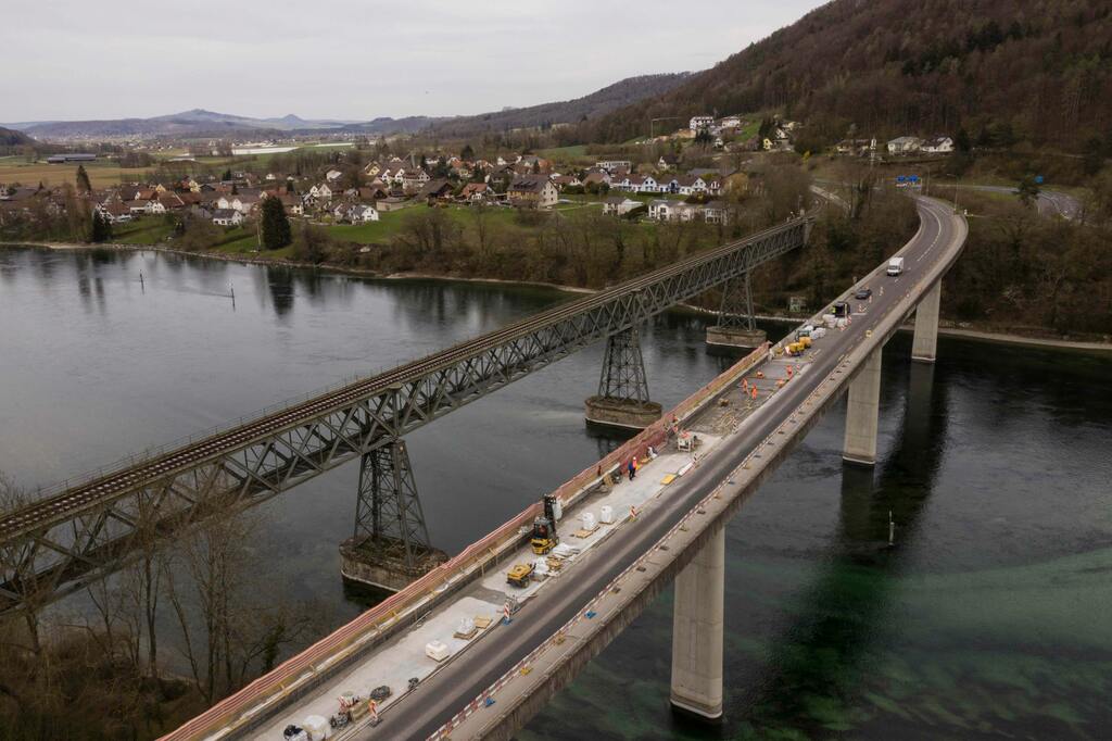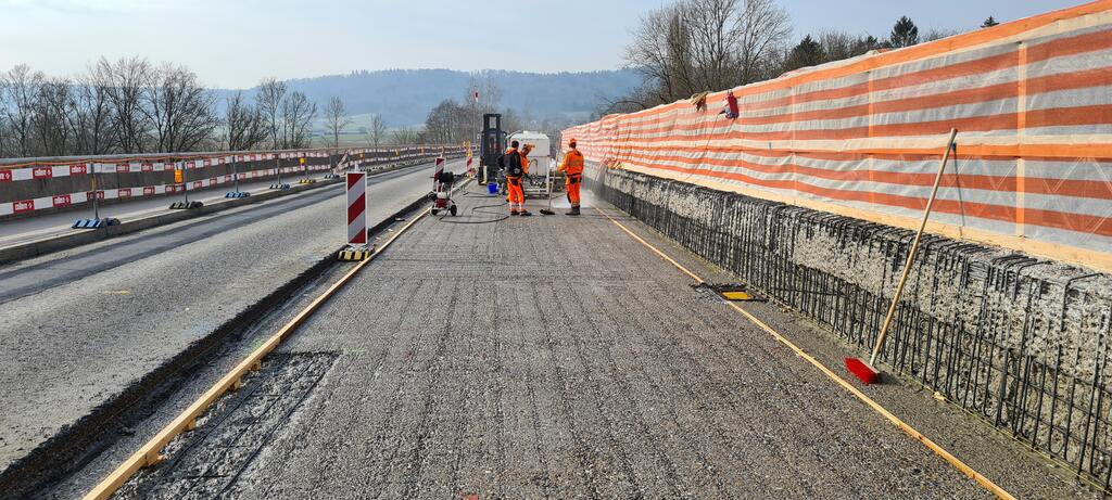 Die Rheinbrücke Hemishofen verbindet die Kantone Thurgau und Schaffhausen miteinander. Die 345 Meter lange Strassenbrücke ist der einzige Brückenübergang zwischen den beiden Kantonen. Sie ist die grösste Brücke im Kanton Thurgau und wurde in den Jahren 1978-1980 erbaut. Über die Jahre haben Frost-Tausalz-Einwirkungen sichtbare Spuren an Betonbrüstungen und Fahrbahnplatte hinterlassen, eine Sanierung war nötig geworden. Dazu wurde an den Betonbrüstungen und der Fahrbahnplatte der geschädigte Beton mittels Wasserhöchstdruck abgetragen und Instandsetzungsmörtel PCI Nanocret R4 SA als Betonersatz oberhalb der Bewehrung aufgebracht. Als Hydrophobierung kam unsere Tiefenhydrophobierung PCI Silconal 328 zum Einsatz.