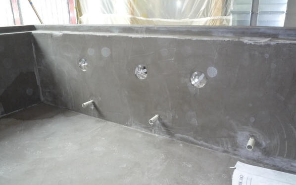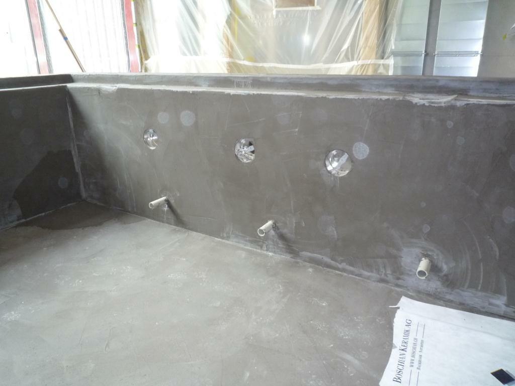 Betonbecken abdichten und mit keramischen Platten verlegen. Fachgerechte Ausführung durch PCI Material erstellen.