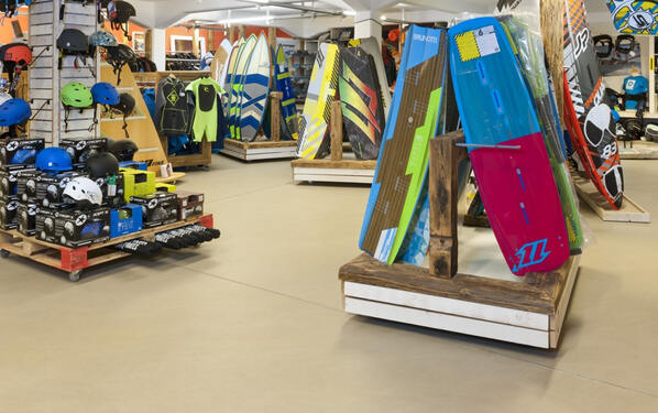 Bei Neu- und Umgestaltungen von Verkaufsflächen liegen mineralische Beschichtungen im Trend. Sie sind funktional und optisch ansprechend, durch die abschließende Versieglung zugleich auch pflegeleicht und dauerhaft. Diese Eigenschaften überzeugten auch bei der Sanierung des Surfshops in Kiel. Hier bieten die „Surfpirates“ auf rund 400 Quadratmetern hochwertiges Kite-, Surf- und SUP-Material an. Als dekorativen Bodenbelag wählte der Bauherr PCI Zemtec 1K. Wie und mit welchen Produkten die aufwändige Bodensanierung vonstattengehen sollte, erarbeiteten PCI-Fachberater Thomas Krüger und PCI-Anwendungstechniker Eric Peter nach einem Ortstermin im Dialog mit Architekt Rudolf Paasch und Fliesenleger Mike Schelle. Das enorm kurze Zeitfenster von rund zwei Wochen erforderte eine einfache und schnelle Vorgehensweise. Das vorgegebene Budget zudem eine wirtschaftliche Lösung – natürlich unter der Prämisse einer soliden handwerklichen Ausführung.
