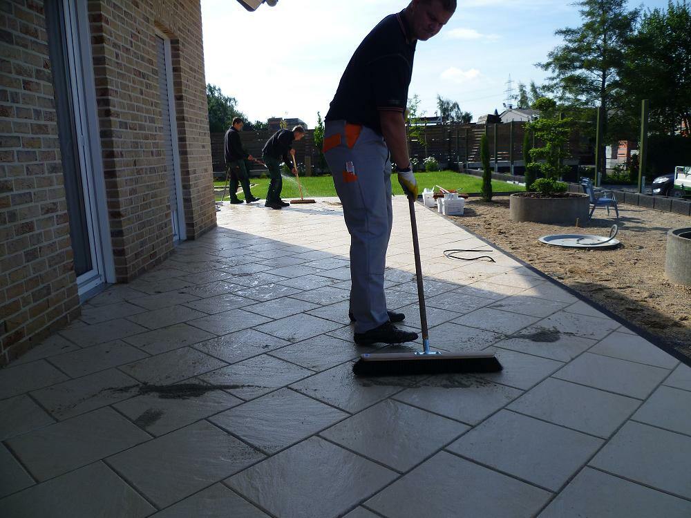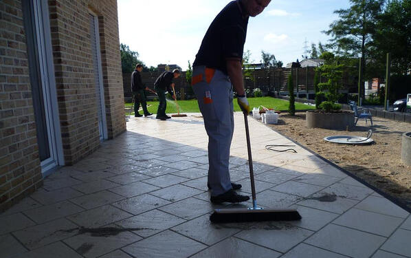 Terrasse mit Betonsteinplatten verlegt und verfugt