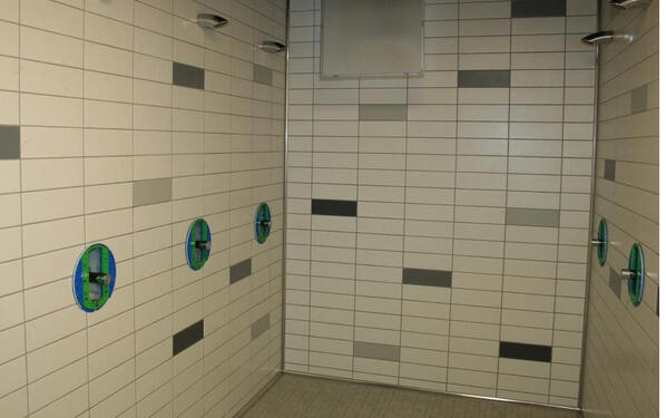 Die Flächen in den Umkleidekabinen und der Fönstraße wurden nach der Montage von Spezialstahlrinnen und dem Einbringen eines Zementestrichs mit der flexiblen Dichtschlämme PCI Seccoral 1K in einer Mindestschichtdicke von 2 mm abgedichtet. PCI Nanoflott light diente zum Verlegen des keramischen Belags, der zementäre Fugenmörtel PCI FT-Megafug zum Verfugen der Feinsteinzeugfliesen.