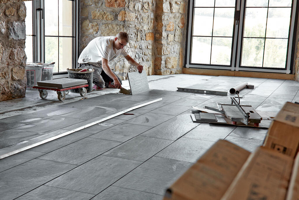 PCI Nanofug Premium war für Fliesenleger Erhard Lambert der Fugenmörtel der Wahl – er setzte ihn universell bei den Fliesenbelägen im „Domaine der la Klauss“ ein. Der variable Flexfugenmörtel ist ein Allrounder und speziell geeignet für Feinsteinzeug- und Steinzeugbeläge. Wie der Nanolight-Kleber punktet auch der Nanofug Premium-Mörtel mit geschmeidiger Konsistenz, komfortabler Verarbeitungszeit und erhöhter Abbindegeschwindigkeit – dadurch lässt er sich sehr angenehm und sehr effektiv verarbeiten. Zusätzlich bietet die ausgehärtete Fuge enorme Vorteile: Die feine Struktur der Fugenoberfläche begünstigt das Abperlen des Wassers (waterdrop effect), mit dem Effekt, dass Schmutzpartikel nicht so leicht anhaften. Der Schmutz setzt sich kaum fest, die Fuge lässt sich einfacher reinigen. Auch Schimmelpilze und Bakterien haben keine Chance – dank der speziellen Rezeptur des Fugenmörtels und seiner werkstoffbedingten Alkalität.