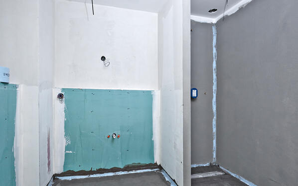 Ebenso wichtig wie die professionelle Verklebung ist der Bodenaufbau: Hierfür verwendete Erhard Lambert PCI Pecilastic U und PCI Seccoral 1K. Neben der Funktion als Abdichtungsbahn entkoppelt PCI Pecilastic U Keramik- und Naturwerksteinbeläge vom Untergrund, so dass nachträglich auftretende Spannungen oder Untergrundrisse sicher kompensiert werden. Vorteilhaft ist die Verarbeitung von PCI Pecilastic U: Sie lässt sich dank parallel angeordneter Noppenstruktur und Maßlinie präzise zuschneiden und ohne Beschweren eben auflegen. Herausragend ist die schnelle Arbeitsfolge: Nach dem Aufkleben der Bahn können Keramik-, Naturwerkstein- und auch Parkettbeläge direkt sicher verlegt werden.