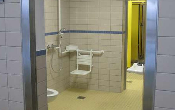 Sanierung des kompletten Schwimmbadumgangs und der Wände sowie der Duschen und der behindertengerecht umgebauten Toilettenanlage