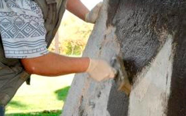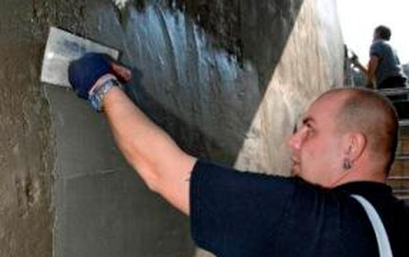 Um den außerordentlich gepflegten Zustand der Anlage zu erhalten, gibt es praktisch immer etwas zu tun. Und so galt es unlängst, den Verputz zweier Betonwände an einer Stützmauer zu erneuern.