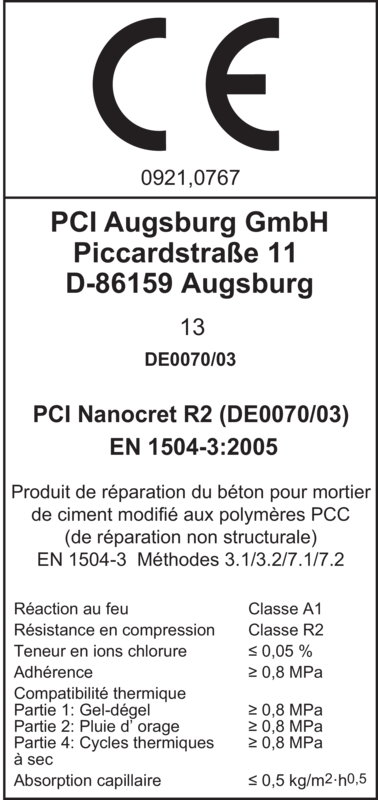 - Listé comme mortier de réparation R2, XF4 selon ÖBV.