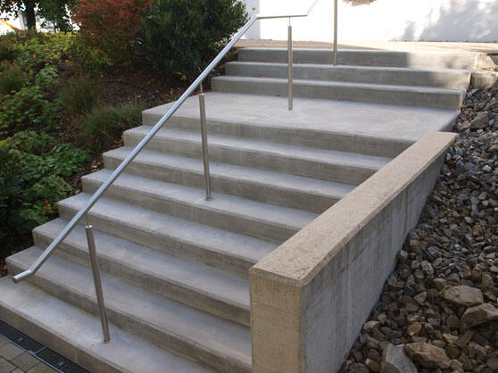 Treppenauftritte sowie die Treppenstirnen sollten in einer Schichtdicke von max. 5 mm überspachtelt werden. Der Betoninstandsetzungsmörtel muss den hohen Frosttausalzbelastungen Stand halten.