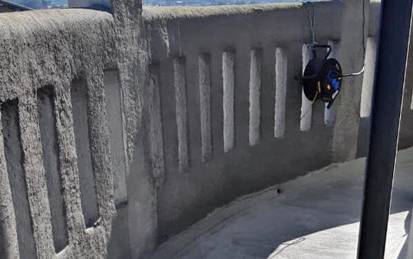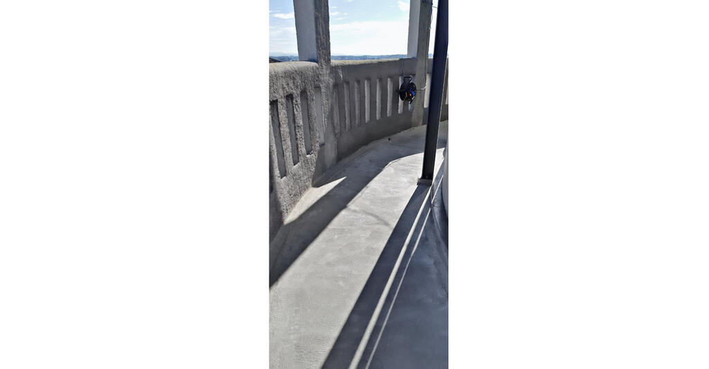 Zunächst entfernten die Handwerker alle losen und gerissenen Estrichteile. Die freigelegte Betonoberfläche schliffen sie mit einem Diamantschleifgerät ab und saugten den Boden anschließend mit einem Industriestaubsauger ab. Zum Vorschein kamen zum Teil völlig verrostete Armierungseisen. Nach Freilegen der Armierungseisen und dem metallischen Blankstrahlen kam der Korrosionsschutz PCI Legaran® RP zum Einsatz. Mit Wasser angemischt und leicht zu verarbeiten, bietet PCI Legaran® RP, zweimalig aufgetragen, hohen Korrosionsschutz gegen Chloride und andere Korrosionsverursacher, ist wasserfest sowie witterungs- und frostbeständig. Das Material wurde mit dem Lastenaufzug auf den Arkadengang geschafft, während die Handwerker jeweils 252 Treppen zu bewältigen hatten, um zur Baustelle zu gelangen.