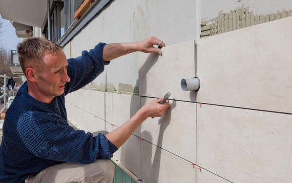 Auf dem insgesamt 120 m² großen Betonuntergrund führten die Fliesenleger zunächst Ausbesserungsarbeiten und die Egalisierung von Unebenheiten mit dem PCI Fassadenspachtel aus. Eine dünne Kontaktschicht wurde anschließend mit dem PCI Fassadenkleber aufgezogen und die armierten CeraVent Bekleidungsträgermatten direkt in der aufgekämmten Kleberschicht fixiert. Gemäß Dübelplan verankerten die Verarbeiter die CeraVent Systemdübel im Untergrund und spachtelte die Matten dann vollflächig mit PCI Fassadenspachtel aus. Während der Trocknungszeit konnten die Be- und Entlüftungsprofile von Gutjahr gesetzt werden. Durch die Belüftung und Entkopplung des keramischen Belags vom Untergrund werden Schäden, die bei einer direkten Verlegung drohen, dauerhaft vermieden. Im nächsten Schritt wurde eine ca. 4 mm dicke Schicht mit dem PCI Fassadenspachtel aufgezogen und das CeraVent Armierungsgewebe eingebettet. Auf der durchgetrockneten Armierungsschicht verlegte Karsten Ramlow mit seinen Mitarbeitern die großformatigen Fliesen der Serie KerAion mit PCI Fassadenkleber und führte die Verfugung der Belagsfugen mit PCI Fassadenfug aus. Bewegungs- und Anschlussfugen wurden zunächst mit PCI Elastoprimer 145 vorbehandelt und anschließend elastisch mit dem PU-Dichtstoff PCI Elritan 100 geschlossen. Die Bilanz nach der Durchführung der Arbeiten war durchwegs positiv: Die Balkongestaltung war fachlich wie auch optisch rundum gelungen und für Kasten Ramlov und sein Team eine erste gute Referenz für Folgeprojekte mit dem CeraVent Fassadensystem.