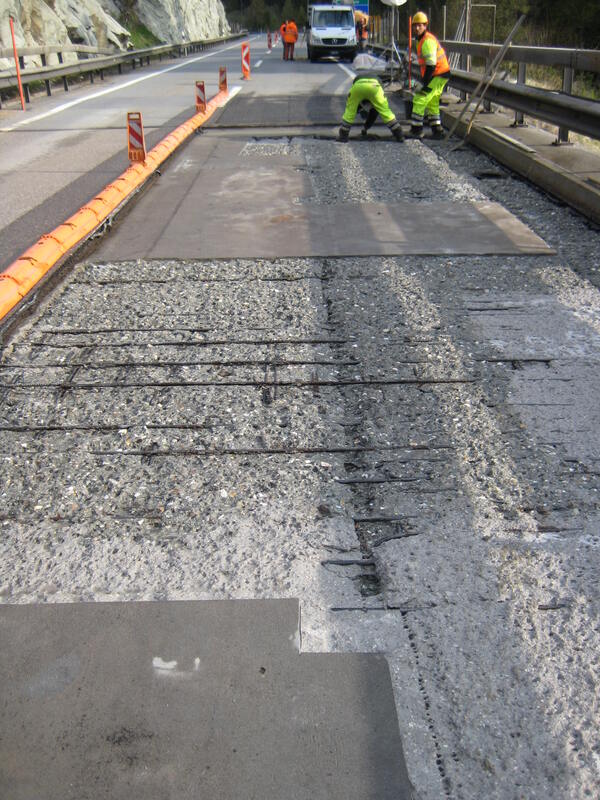 Betoninstandsetzung der Fahrbahnplatte inkl. neuer Abdichtung und neuer Belag als Überbrückungsmassnahme