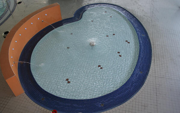 Die rund 1250 m² große Halle verfügt über ein Schwimmerbecken 25x16,66 m (26°C Wassertemperatur) mit Sprungturm, ein rund 150 m² großes Nichtschwimmerbecken (22-30°) sowie ein Planschbecken (32°C) mit ca. 25 m² Wasserfläche. Die Becken im Hallenbad wurden als wasserundurchlässige Betonbecken ausgeführt. Hinsichtlich der monolithisch gegossenen Wasserbecken mit der Beckenkopfvariante „System Zürich“ waren vom verarbeitenden Fliesenfachbetrieb erhöhtes Fachwissen und Erfahrung im Schwimmbadbau gefordert. Den Zuschlag erhielt deshalb das Fliesenfachgeschäft Schmelzer GmbH aus Saarbrücken/Ensheim. Das Unternehmen ist über die Grenzen des Saarlandes hin bekannt als Spezialist für Großobjekte und Schwimmbadanlagen, was sich auf den gesamten Bauablauf sehr positiv auswirkte. In Zusammenarbeit mit der anwendungstechnischen Abteilung und dem zuständigen Verkaufsberater der PCI – Augsburg GmbH als Hersteller der bauchemischen Spezialprodukte sowie der pünktlichen Lieferung auch der keramischen Ware über den Großhandel Vatter Baukeramik GmbH (Kaiserslautern) konnte ein termingerechter Zeitablauf der anspruchsvollen Arbeiten sichergestellt werden.