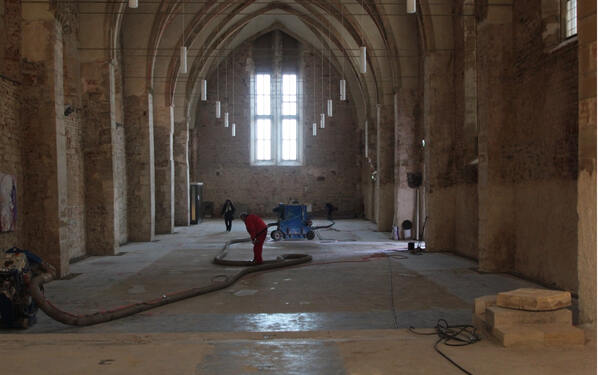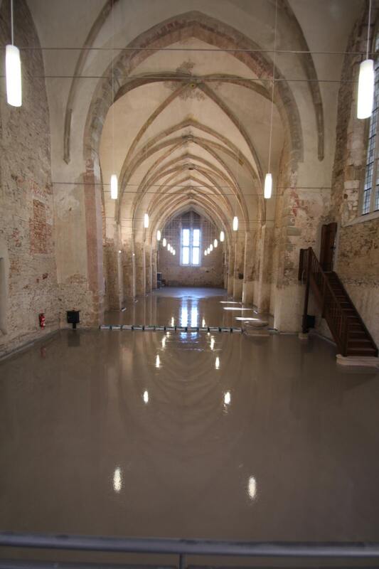 Das Franziskanerkloster am Südrand der Zeitzer Altstadt gehört zu den am besten erhaltenen Klosteranlagen in Sachsen-Anhalt. Die Stadt nutzt die Klosterkirche seit 2011 als einen beliebten Veranstaltungsort. Nach den ersten Events wies der Estrich über dem unregelmäßigen Sandsteinpflasterbelag partielle Fehlstellen, flächige Hohllagen und Risse auf. Daher wurde der Fußboden der Klosterkirche auf einer Fläche von 450 m² erneuert.