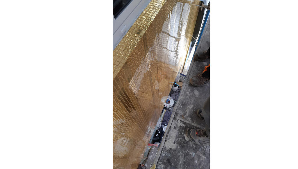 Verlegen und Verfugen von 51.000 Mosaik-Plättchen aus Blattgold an einer Gebäudefassade