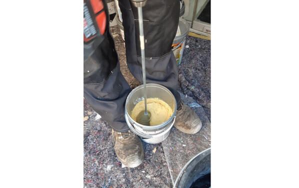 Der Verarbeiter, das Fliesencenter Wurth in Solingen, zog für die Ausführung der Verlegearbeiten die PCI Augsburg GmbH zu Rate. Bei Planung, Produktauswahl und Verarbeitung unterstützen PCI-Anwendungstechniker Stephan Leistner, PCI-Servicetechniker Cristian Kollmeyer und PCI-Fachberater Henning Uebach. Zur Verlegung des Mosaiks verwendeten die Verarbeiter den frost- und witterungsbeständigen Reaktionsharzmörtel PCI Durapox® NT plus.