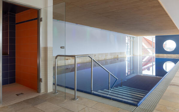 Mitten im niedersächsischen Bad Bentheim an der deutsch-holländischen Grenze gelegen, bietet das Hotel Grossfeld genau das, wofür Gäste meist einen Kurort besuchen: einen großzügig angelegten Spa-Bereich mit großem Indoor-Pool und einem Außenschwimmbad, mit Dampfbad und Ruhebereichen. Das Hotel – einst ein kleiner Krämerladen mit angeschlossenem Gasthaus – ist mit 225 Betten eines der größten inhabergeführten Hotels in der Region. Zum modernen Schwimmbad im Innenbereich passend, sollte das Dampfbad komplett erneuert werden. Hotelinhaber Johannes Grossfeld beauftragte den auf Wellnessanlagen spezialisierten Fliesenverlegebetrieb Wolfgang Peters aus Bochum mit dem Neubau.
