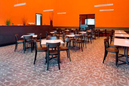Es handelt sich um eine Holzkonstruktion mit Fachwerkträgern, deren Oberflächen innen und außen mit Faserzementplatten bekleidet sind. In ihrem Inneren befinden sich ein rund 600 qm großer Ausstellungsraum, dazu Foyer und Restaurant.