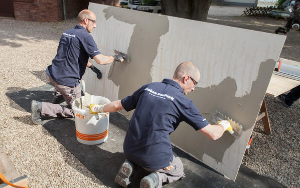 Großformatige Fliesen liegen voll im Trend. Sie wirken nicht nur edel und modern, sondern lassen kleine Räume größer und große Räume ruhiger erscheinen. Sein 60 m2 großes Wohnzimmer verlegte Fliesenlegermeister Jens Pomplun aus Linnich deshalb mit Feinsteinzeugfliesen im Format 270 x 120 cm. Von der PCI-Beratung und der professionellen Ausführung profitierte er nicht nur privat. Gleichzeitig konnte er wichtige Erfahrungen und Fachkenntnisse für das neue Aufgabenfeld „Verlegung von Großformaten“ sammeln.