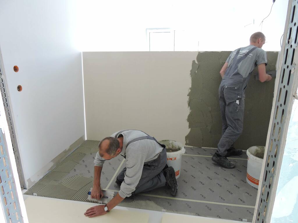In tutti gli ambienti non soggetti a umidità gli addetti hanno in seguito posato PCI Pecilastic E. Si tratta di un manto desolidarizzante e deformabile in grado di compensare eventuali tensionamenti con un effetto ponte sulle fratture per garantire un'elevata sicurezza anche in caso di successive fessurazioni del sottofondo. Un ulteriore vantaggio è costituito dalle sue proprietà anticalpestio. Nel bagno è stato utilizzato il manto PCI Pecilastic U, che oltre ad essere desolidarizzante è anche impermeabile e protegge in modo affidabile i sottofondi sensibili all'umidità. La messa in opera del manto è avvenuta con l'adesivo deformabile per piastrelle PCI Flexmörtel S1 Flott, mentre per l'impermeabilizzazione di battute, giunti e raccordi sono stati utilizzati i nastri sigillanti della gamma PCI Pecitape.