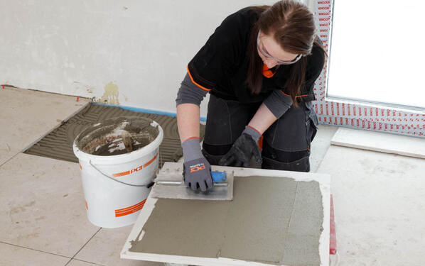 Natursteinverlegearbeiten mit PCI Carrament Grau und PCI Carrafug