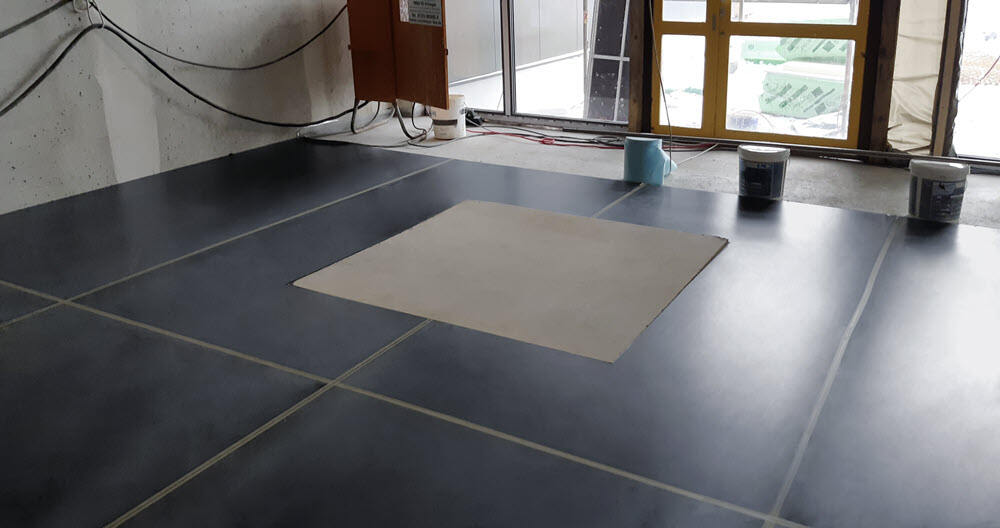 Für die Verlegung der XXL-Platten war der hohe Ausdehnungskoeffizient von Stahl zu berücksichtigen: Stahl dehnt sich bei Temperaturunterschieden mehr aus als herkömmliche Verlegematerialen. Hinzu kommt der geringe Fugenanteil: Fugen bauen thermische Spannungen und Schwindspannungen ab. Bei Formenbau Staiger war dies aufgrund des geringen Flächenanteil jedoch nur eingeschränkt möglich. Zudem verschärfte die im Estrich verlegte Fußbodenheizung die Baustellensituation.