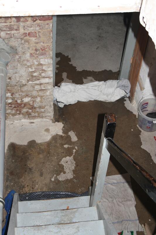 Sanierung von Kellerboden und -wänden nach jahrelanger Feuchtigkeit und akutem Wasserschaden