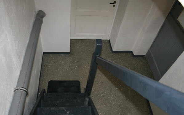Bei der Beschichtung des Kellerbodens unterstützte die PCI-Anwendungstechnik durch Herrn Stefan Marx vor Ort. Die Spezialhaftgrundierung PCI Gisogrund 404 wurde auf den gereinigten Untergrund zweimal aufgetragen. In einer Schichtdicke von ca. 5 mm wurde darauf mit der Zement-Kunststoff-Beschichtung PCI Zemtec 230 beschichtet, um einen abriebbeständigen und belastbaren Kellerboden gewährleisten zu können. Mit der Einstreuung der PCI Farbchips wurde eine farblich ansprechende Gestaltung des Bodens realisiert. Um eine ausreichende Rutschhemmung zu erreichen, setzten die PCI-Mitarbeiter die 2K-PUR-Versiegelung PCI Finopur mit rutschhemmender Vergütung ein.