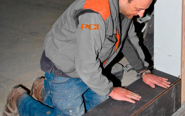 Die Böden der Sanierungsflächen im Altbau sowie die des gesamten Neubaus sind Zementestrich. Entsprechend ihrer späteren Nutzung mussten die Untergründe unterschiedlich vorbereitet werden. Zunächst wurde die gesamte Fläche von 1.400 Quadratmetern mit PCI Gisogrund 303 für glatte, nicht saugende Untergründe grundiert. Die Böden der Duschen und WCs wurden mit der Sicherheitsdichtschlämme PCI Seccoral 1K abgedichtet. An den Wänden der Sanitärräume sowie in der Küche des Bistros und im Griffelager kam PCI Lastogum zum Einsatz, eine flüssige Flächenabdichtung, die speziell für Feucht- und Nassräume entwickelt wurde. Zur Entkopplung des Fliesenbelags vom Untergrund wurden auf sämtlichen Böden PCI Pecilastic U ausgelegt, eine druckstabile Abdichtungs- und Entkopplungsbahn. Ihr mehrschichtiger Aufbau reduziert zusätzlich den Tritt- und Raumschall, was ein angenehmes Raumklima schafft.