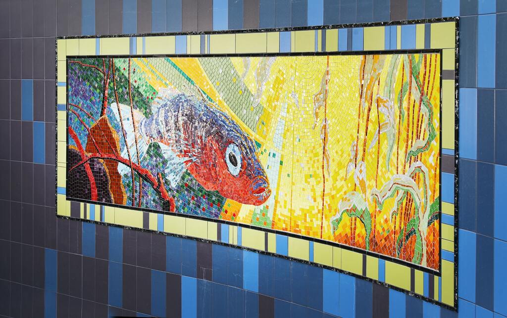 Kunstvolle Glasmosaike an Hollands größter Fischtreppe