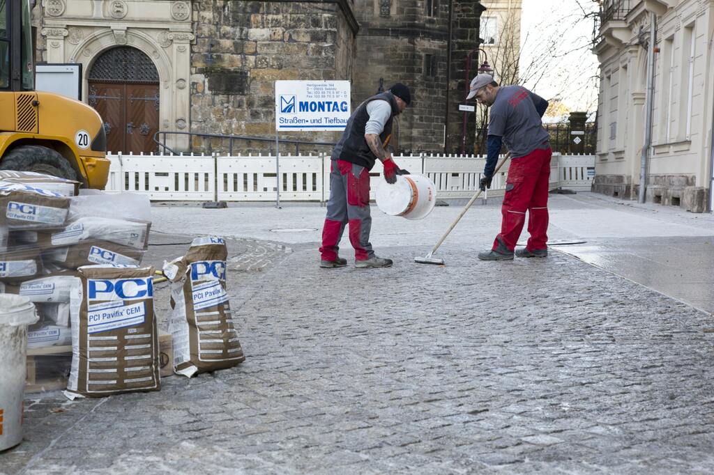 Die von der Stadt Bad Schandau beauftragte MONTAG Straßen- und Tiefbau GmbH & Co. KG setzte aus langjähriger Erfahrung und Zusammenarbeit mit der PCI Augsburg GmbH auch bei diesem Projekt auf die hochwertigen PCI-Produkte. Die Pflasterverlegung erfolgte in gebundener Bauweise auf einer festen Tragschicht aus wasserdurchlässigem Drainmörtel. Für den optimalen Haftverbund wurde die Unterseite der Granitsteine vor dem Verlegen in die wasserfeste und frostbeständige Mörtel-Haftbrücke PCI Repahaft getaucht. Zum Verfugen verwendete das Team um Stephan Montag den speziell für hohe Belastungen entwickelten, nicht drainfähigen Zement-Pflasterfugenmörtel PCI Pavifix CEM. Im Schlämmverfahren wurde der fließfähige Fugenmörtel auf die vorgenässte Pflasterfläche aufgebracht und mit einem harten Gummischieber in die Fugen verteilt. Das Restmaterial ließ sich durch horizontales Abspritzen mit einer Flachstrahldüse optimal entfernen. Für das Verfugen der Pflanzkübel kam PCI Pavifix CEM ROC als standfester Fugenmörtel zum Einsatz. Für die dauerelastische Verfugung der Dehn- und Bewegungsfugen wurde PCI Elritan 140 zusammen mit der Haftgrundierung PCI Elastoprimer 110 für die Fugenflanken verwendet.