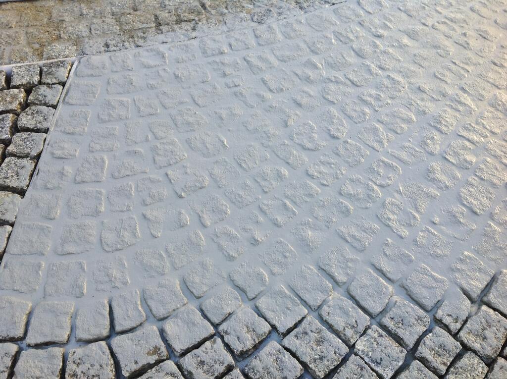 Absolut sichere Verlegung von Granitpflaster durch optimalen Haftverbund zum Drainmörtel und dauerhaft widerstandsfähiger Verfugung