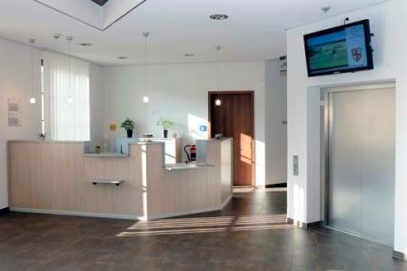 Das Medebacher Rathaus ist ein Vorzeigeprojekt in Sachen Kosteneffizienz, Budgettreue und rasantem Baufortschritt: In nur 18 Monaten entstand das Gebäude im Herzen der Stadt und versinnbildlicht das Selbstverständnis der Stadtverwaltung als modernes, barrierefreies Dienstleistungsunternehmen. Auf rund 1.100 Quadratmetern wurde hier Feinsteinzeug im Format 30 x 60 auf Entkopplungsschichten und mit Flexmörteln auf den gut vier Wochen jungen Heizestrich der Fußbodenheizung verlegt. Die Verarbeitung erfolgte mit den Produkten der PCI Augsburg GmbH, um das anspruchsvolle Anforderungsprofil dauerhaft zu sichern. Für die besonders häufig begangenen Flächen in Foyer, Sitzungssälen und den Fluren fiel die Wahl auf unglasierte, großformatige Feinsteinzeugfliesen. Für eine angenehme Atmosphäre sorgt dabei zudem das Trittschallverbesserungsmaß von ca. 8 dB durch die Entkoppelung des Fliesenbelages vom Boden. Den Auftrag für die Fliesenverlegearbeiten erhielt die Firma Ralf Schmidt. „Wir sind mit vier Jahren noch ein junges Unternehmen und müssen uns unser Renommee noch erarbeiten. Da wollten wir natürlich bei der Verarbeitung auf Nummer sicher gehen und haben uns für die bekannten und zuverlässigen Produkte der PCI Augsburg entschieden“, erinnert sich Fliesenlegermeister Ralf Schmidt.