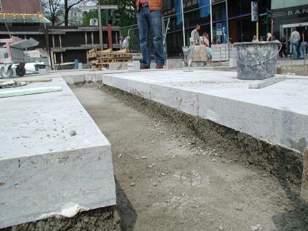 Verlegen und Verfugen von Muschelkalkplatten auf Magerbeton