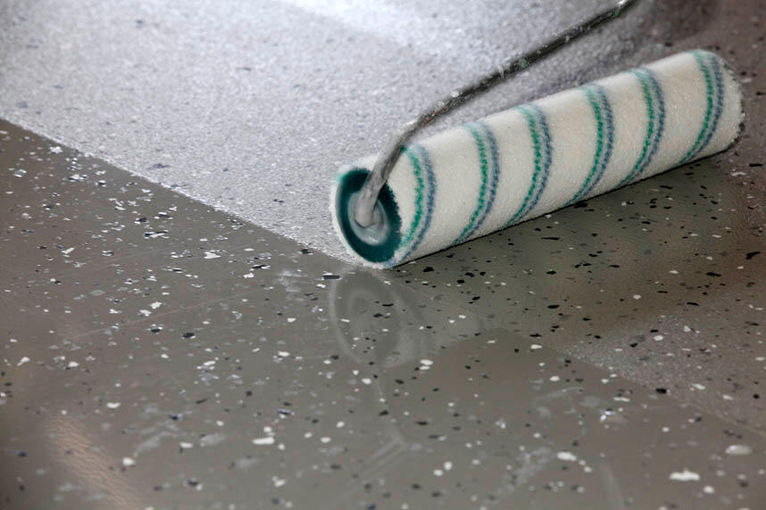 Beschichtung des Bodens im neuen Gerätehaus mit einem besonders widerstandfähigen, haltbaren und sicheren Belag
