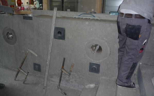 Das Schwimmbecken wurde komplett neu aufgebaut. Sämtliche Einbauteile wurden mit PCI Aposan aufgefüllt. Anschliessend wurden die Einbauteile mit PCI Epoxigrund 390 grundiert, danach abgesandet, um eine optimale Untergrundhaftung zu erreichen. Wände und Boden wurden mit PCI Pericret überspachtelt, um Unebenheiten und Gefälle auszugleichen. Abgedichtet wurde mit PCI Seccoral 2K in zwei Schichten, um die geforderten 2 mm zu erhalten. Eck- und Bodenanschlüsse wurden mit PCI Pecitape 120 und PCI Pecitape 90° A und 90° l abgedichtet. Einbauteile wurden mit PCI Pecilastic W abgedichtet. Die Kapillarsperre wurde beim Beckenkopf mit PCI Apoten ausgebildet. Wand- und Bodenplatten wurden mit PCI FT Extra verklebt. Das Ausfugen der Wand- und Bodenplatten wurde mit dem Fugenmaterial PCI Durapox NT plus gemacht. Die Wand- und Bodenanschlüsse wurden fachgerecht mit dem elastischen Dichtstoff PCI Silcoferm VE ausgebildet.