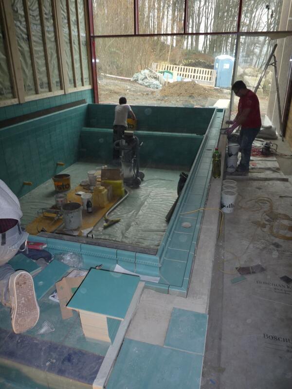 Betonbecken abdichten und mit keramischen Platten verlegen. Fachgerechte Ausführung durch PCI Material erstellen.