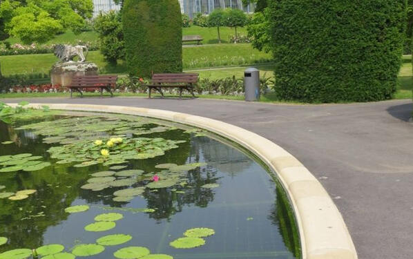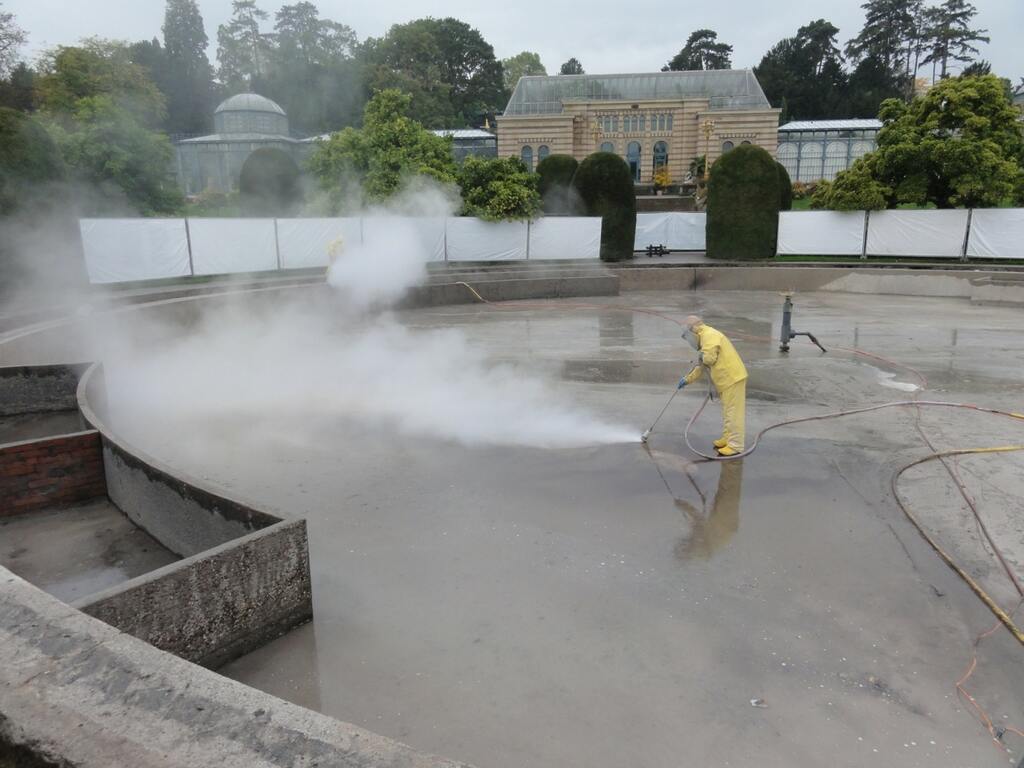 Rückblick: Nach über einem halben Jahrhundert Bestehen konnte Ende 2012 die Sanierung nicht mehr vermieden werden. Helmut Gekeler von der Technischen Abteilung der Wilhelma holte dazu Spezialisten in die Anlage, die innerhalb von fünf Monaten inklusive einem Winterbaustopp dem großen Becken eine Frischekur verabreichten. Unter fachmännischer Betreuung von PCI-Fachberater Erhard Kuttler und PCI-Anwendungstechniker Peter Scharping arbeiteten drei regional ansässige Baufachunternehmen daran, den Seerosenteich instand zu setzen. Zu Beginn der Arbeiten mussten die Pflanzen weichen. Die Leerung offenbarte ein Bassin, das weder funktionalen noch ästhetischen Ansprüchen genügte. Zunächst wurden die Betonflächen durch Wasserhöchstdruckstrahlen mit über 800 bar bearbeitet. Nach der Reinigung überzogen die Sanierungsexperten die Wände des Beckens mit einem PCC-Feinspachtel, der Spezial-Zementmörtel-Mischung PCI Nanocret FC. Der Wandbereich im Innern des Teiches war bereits nach diesem Arbeitsschritt abgeschlossen. Auf der Bodenfläche galt es, Risse durch Tränkung zu schließen: An dieser Stelle kam das Gießharz PCI Apogel F zum Einsatz. Danach galt es, eine neue glatte und intakte Estrichfläche herzustellen. Damit sich der neue Estrich kraftschlüssig und dauerhaft mit dem Untergrund verbindet, verwendeten die Bauprofis die Systemhaftschlämme PCI Repahaft. Die Verarbeiter brachten den Estrich, hergestellt aus Estrich-Kiessand und Estrich-Schnellzement-Bindemittel PCI Novoment Z3, in die noch feuchte Haftbrücke ein und erstellten damit eine funktionale Fläche für den Seerosenteich. Bevor die Fachleute dann die denkmalgeschützten Kronensteine wieder an ihren alten Platz legen konnten, mussten sie den Beckenkopf reprofilieren. Hierbei kam das Epoxi-Bindemittel PCI Bauharz abgemischt mit einem kornabgestimmten Quarzsand zum Einsatz. Zum Abschluss die Fugen: Für die bessere Haftung des Fugendichtstoffes arbeiteten die Sanierungsspezialisten mit der Haft-Grundierung PCI Elastoprimer 110. Verfugt wurden die Zwischenräume der Natursteinblöcke mit PCI Escutan TF. Dank der geprüften Materialien der PCI Augsburg GmbH sowie dem Know-how der verarbeitenden Betriebe ist sowohl ein schönes als auch stabiles und den erhöhten Anforderungen gerecht werdendes Bassin entstanden.