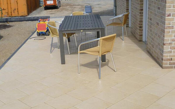 Terrasse mit Betonsteinplatten verlegt und verfugt