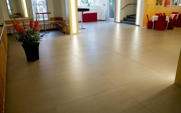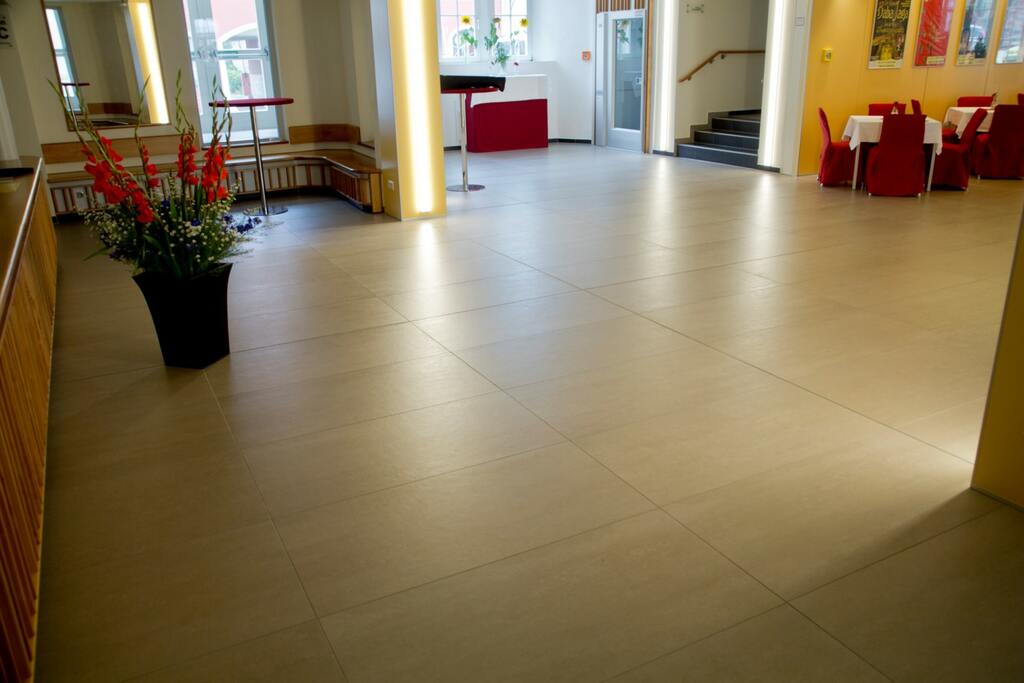 Der Bodenbelag prägt den innenarchitektonischen Gesamteindruck einer Räumlichkeit entscheidend. Neben der Art des Materials, seiner Struktur und Farbe trägt gerade auch das Großformat eines Fliesenbelags dem ästhetischen Anspruch Rechnung. So geschehen im mehrfach-funktionalen Foyer des Theaters in Meißen. Dass die praktische Umsetzung der gestalterischen Konzeption nicht immer einfach ist, zeigt dieses Objektbeispiel.