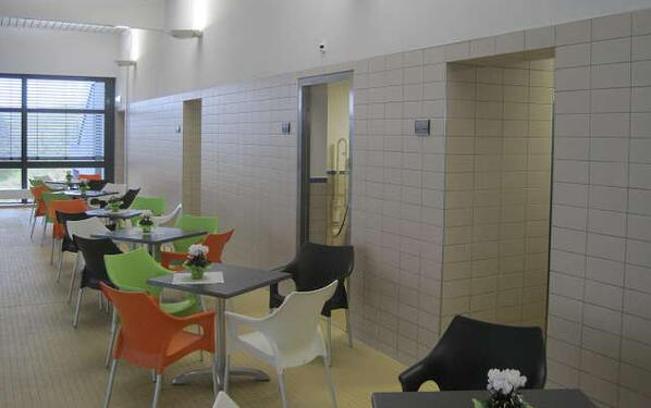 Sanierung des kompletten Schwimmbadumgangs und der Wände sowie der Duschen und der behindertengerecht umgebauten Toilettenanlage